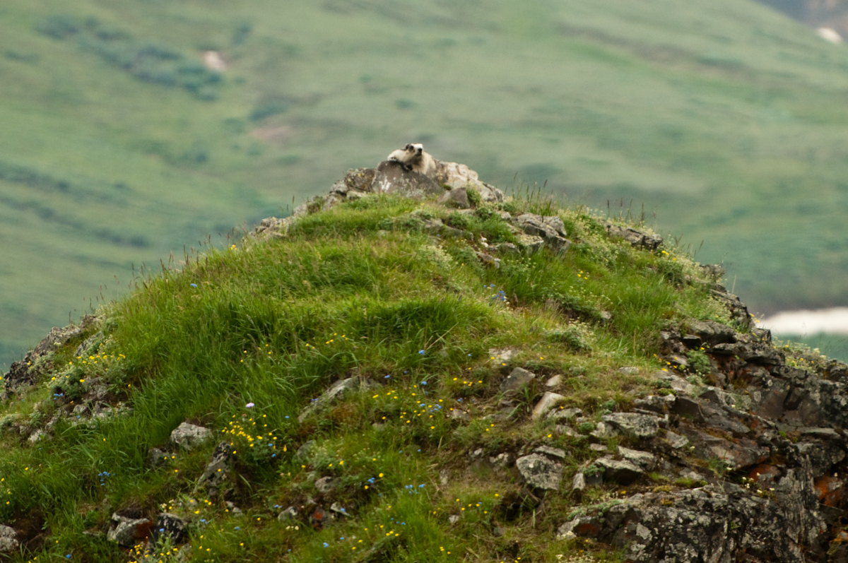 Edward spotted this marmot laid out on a rocky knoll as we drove by! That was a good spot! And such a cool little critter too!