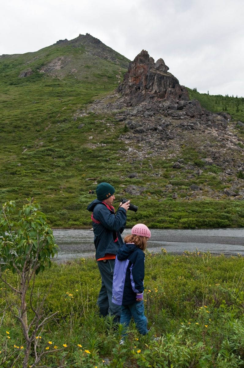 We started the week out with a hike along the Savage River. We didn't make it the whole way due to an unplanned dip in the river by the youngest. Alex, three years old, stepped off the trail into a bush that he didn't realize was overhanging on the bank of the river and fell straight through! Splash! With very quick reacting by my brother, he pulled him out of the river in no time. Safe and sound and a bit shook up, but not as shaken up as his aunt and uncle who knows what happens to a lot of people that end up swimming in these silty glacial fed rivers.